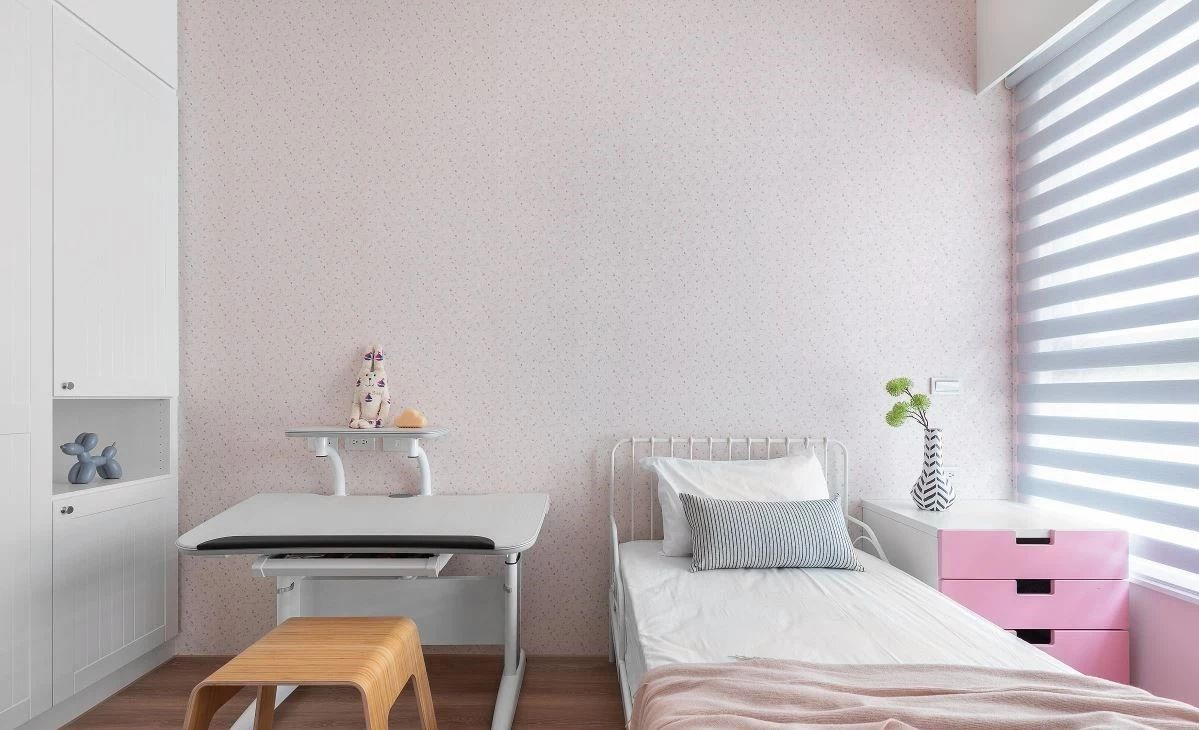 客廳里沒有設置笨重的茶幾,藍灰色的布藝沙發(fā)帶點文藝風,淺灰色的地毯讓人感覺很溫暖。 黃色的懶人椅很休閑風,顏色比較純凈。 電視背景墻采用全木質板,兩邊的墻面粉刷天藍色的乳膠漆,清新自由,擱板下面是白色的矮柜,收納功能很好,既美觀又做了收納。 右邊的電視背景墻上懸掛了六邊形的白色收納,比較有趣,木質的底色與電視背景墻相呼應。 灰色的時鐘很獨特很有個性,利用時鐘的邊角形狀來確定時鐘的刻度,木質擱板上可以放一些收納或者小盆栽,會起到不一樣的裝飾作用。 餐廳 粉色的圓形吊燈讓整個空間都變得可愛起來,淡藍色的背景墻,溫潤質感的文化磚墻面,淡灰粉的收納柜門,原木色的餐桌椅,很小清新。 主臥 北歐風就不是沉甸甸的感覺,一定是這種相對比較明亮的色調,空間都會比較純凈,尤其是墻面的裝飾,一般都是純顏色,不會有圖案的修飾。 在臥室設計電視,也是為了方便業(yè)主在睡覺前休閑放松一下,白色的衣柜門與墻壁融為一體,推拉門不會占據(jù)太多的空間。 飄窗處有一個麻編的衣物籃,有時候穿過的衣服,來不及洗,可以先放在這個籃子里面,第二天再洗。 次臥 次臥的床頭背景墻有一種水面上的波光粼粼的感覺,白色的鐵藝床是北歐風的標志,簡約時尚。 書桌設計在床的旁邊,是為了工作的隨叫隨到,學習時更方便,看書或者工作,累了就往床上一躺,休息一下。 兒童房 兒童房超粉嫩可愛,偏粉色的床頭背景墻,粉色的床頭柜門,和次臥一樣,有一張書桌,便于學習。 大面積的粉色墻壁真的太少女心了,小公主的房間的標配色。 END 圖文源自網(wǎng)絡,若侵權請聯(lián)系刪除