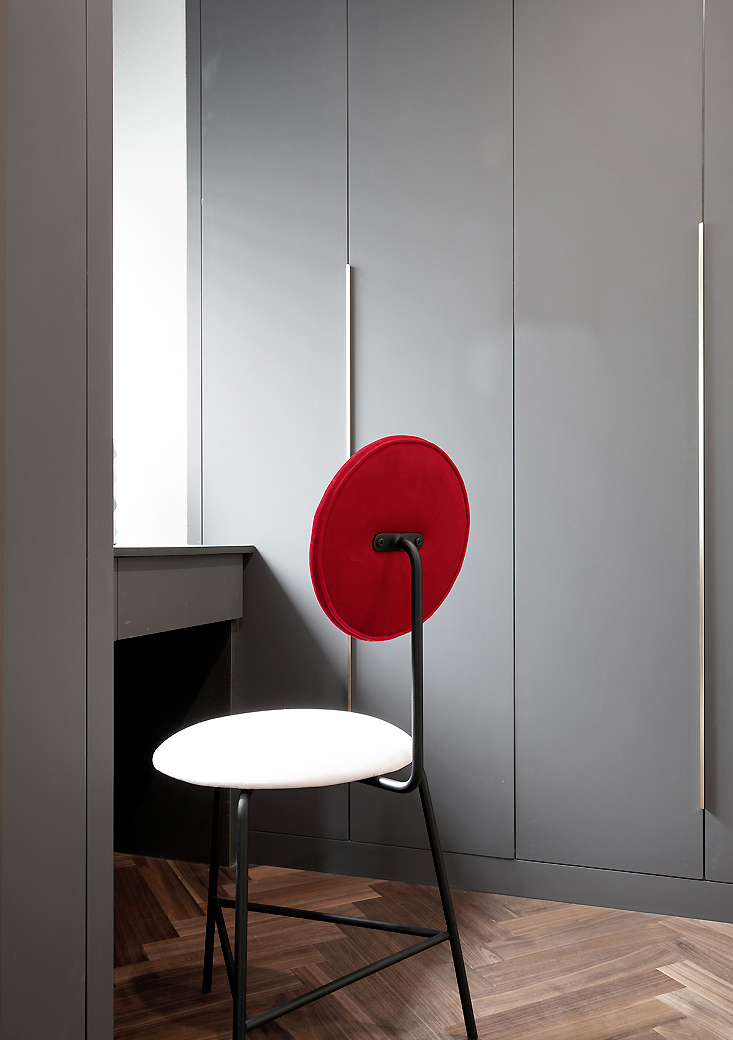 ▲ 步入式衣帽間以灰白色調(diào)打造,優(yōu)雅而理性,簡約而不簡單。