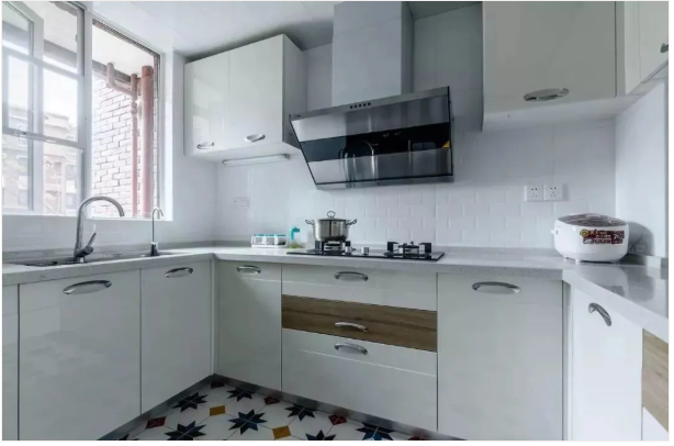 除了亞克力板,對于簡約現(xiàn)代風(fēng)格的廚房,選擇白色的普通板材,搭配上灰調(diào)或黑色,整體空間效果也是非常的簡約自然。