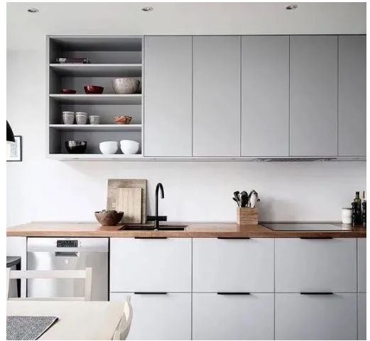 不過位置卻有所變動(dòng),吊柜的留空位置多在吊柜下部,而地柜的留空則在地柜的上部。畢竟,合適的高度可以保證家人在取用物品時(shí)足夠輕松,不必踮腳彎腰。
