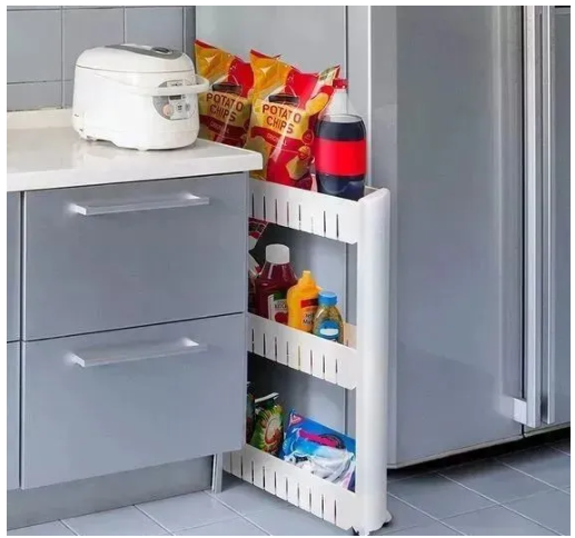 夾縫收納架今天要說的最后一個(gè)廚房里的靈活收納方法,夾縫收納架。